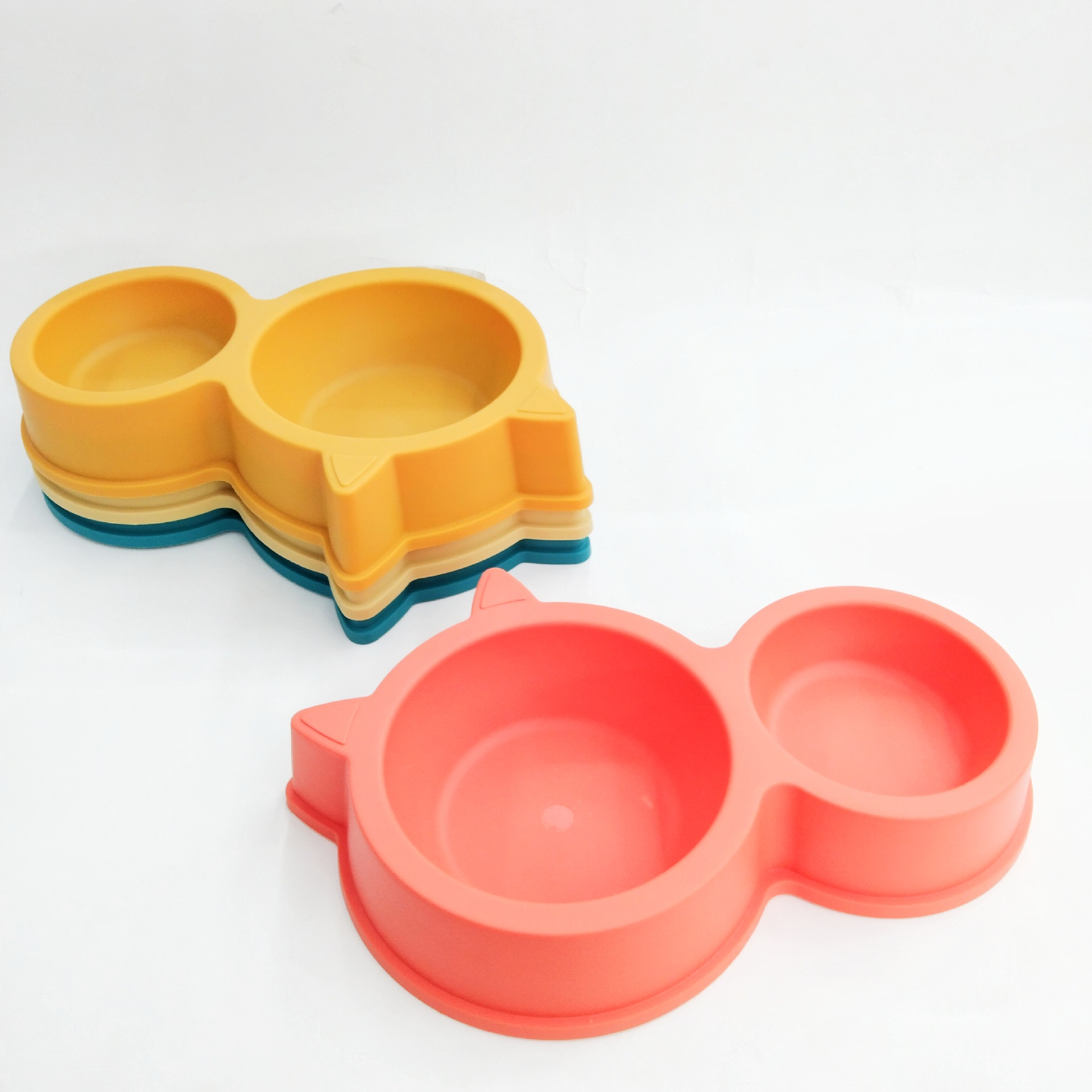 Cat Shaped Dual Plastic Bowl