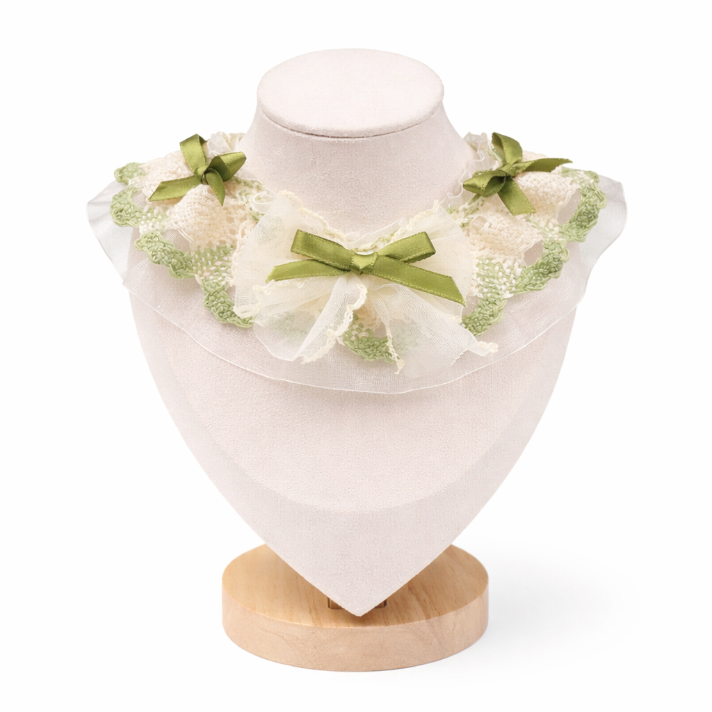 Crafted with soft floral lace detailing and finished with decorative satin bows, this neckwear adds a charming boutique look perfect for grooming, photoshoots, celebrations, and daily fashion wear.
